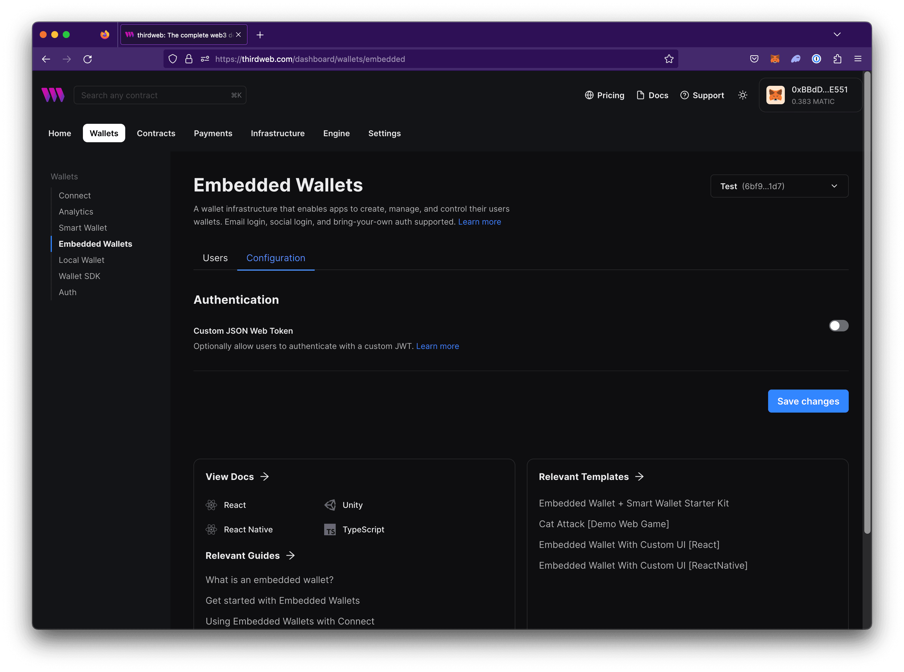 Create a thirdweb API key if you don't have one or select an existing key to use for this project. Learn more about API keys.